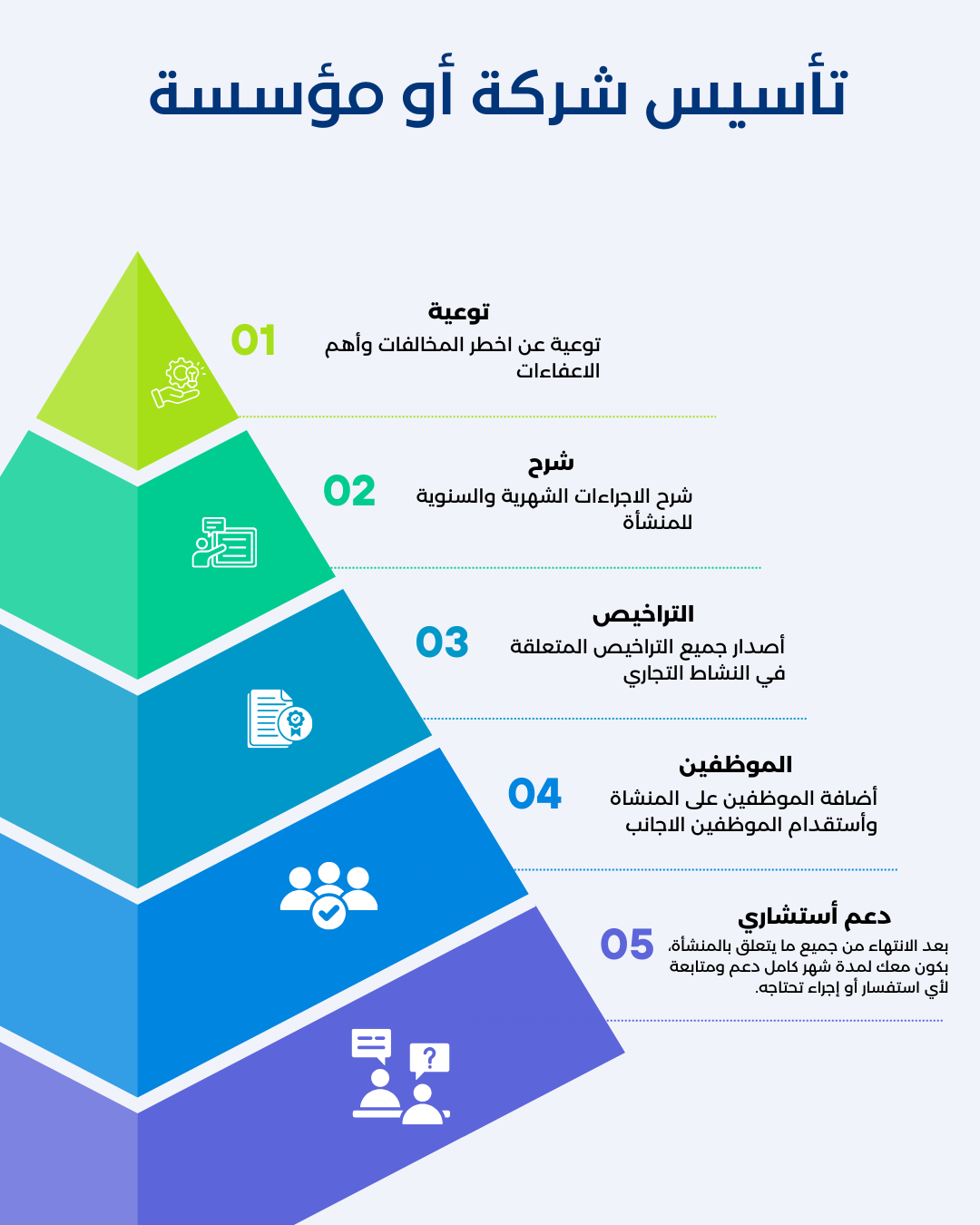 ١ اقدم لك عرض تاسيس مشروع متكامل يبدا بتوعية حول اخطر المخالفات واهم الاعفاءات لضمان انطلاقة سليمة